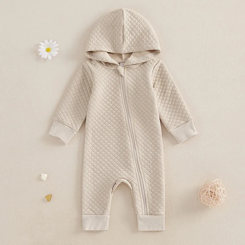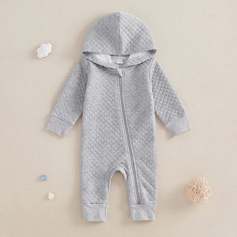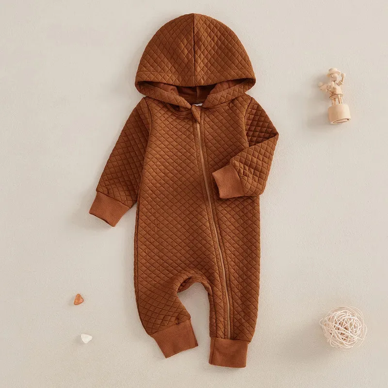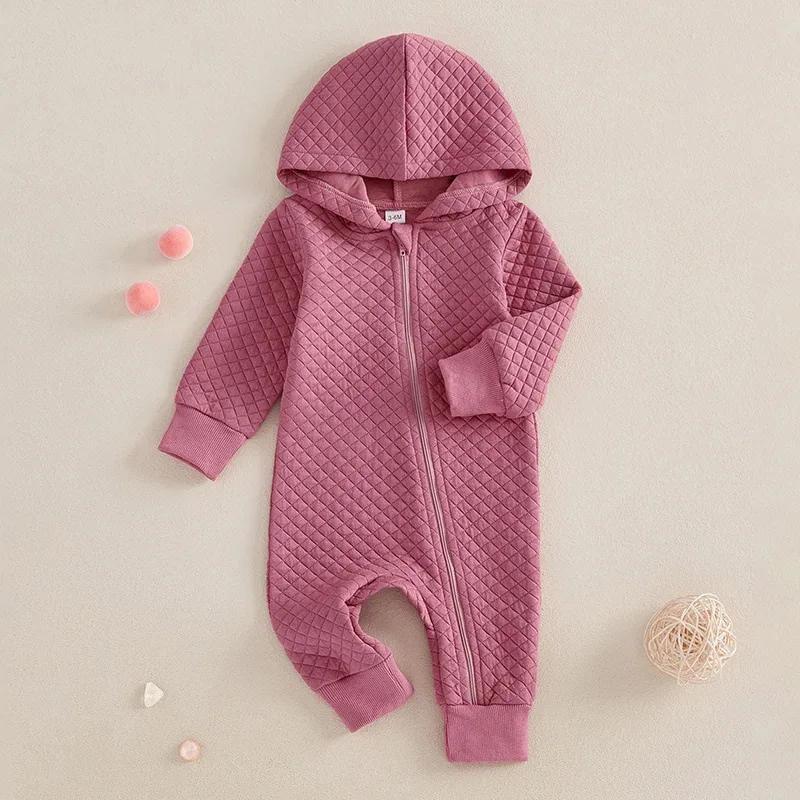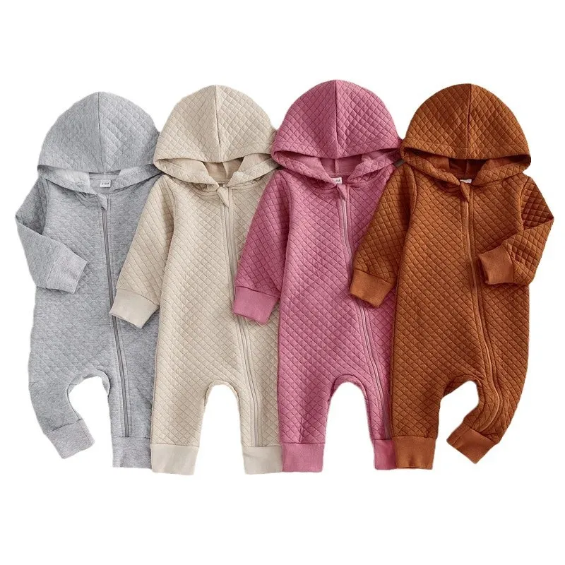 For New Products Autumn 2026 Unisex Newborns Solid Color Cotton Hooded Zipper Coat