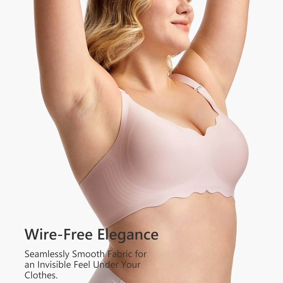 Customized Logo Seamless Plus Size Wireless Bra for Women Push up Bralettes Ladies V Neck Full Cup Padded Scalloped Bras
