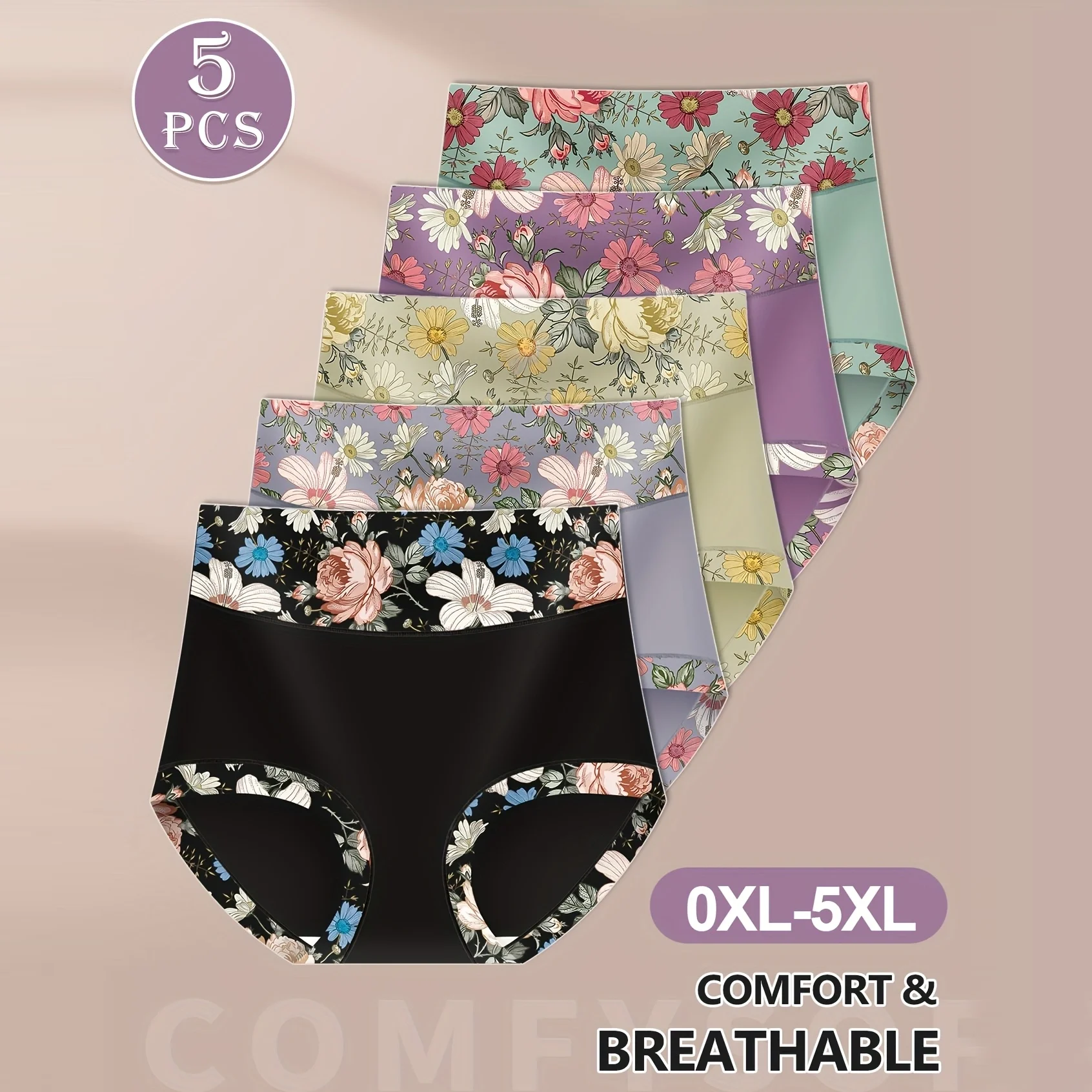 5-Piece Wholesale Women's Underwear High Waist Printed Bag Buttocks Multi-Color Briefs Combination USA Warehouse Shipping 2026