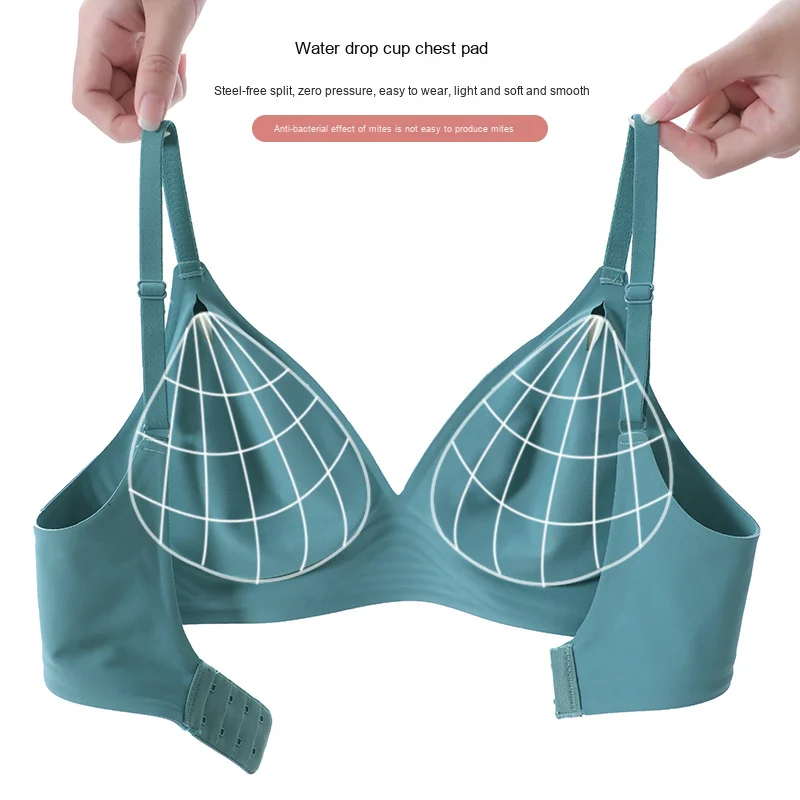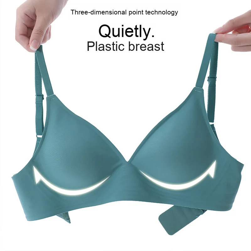 Women's Summer Seamless Jelly Strip Bra New Wire-Free Push-Up Breast Retracting Cup Bras Adjustable Straps Thin Rims Breathable