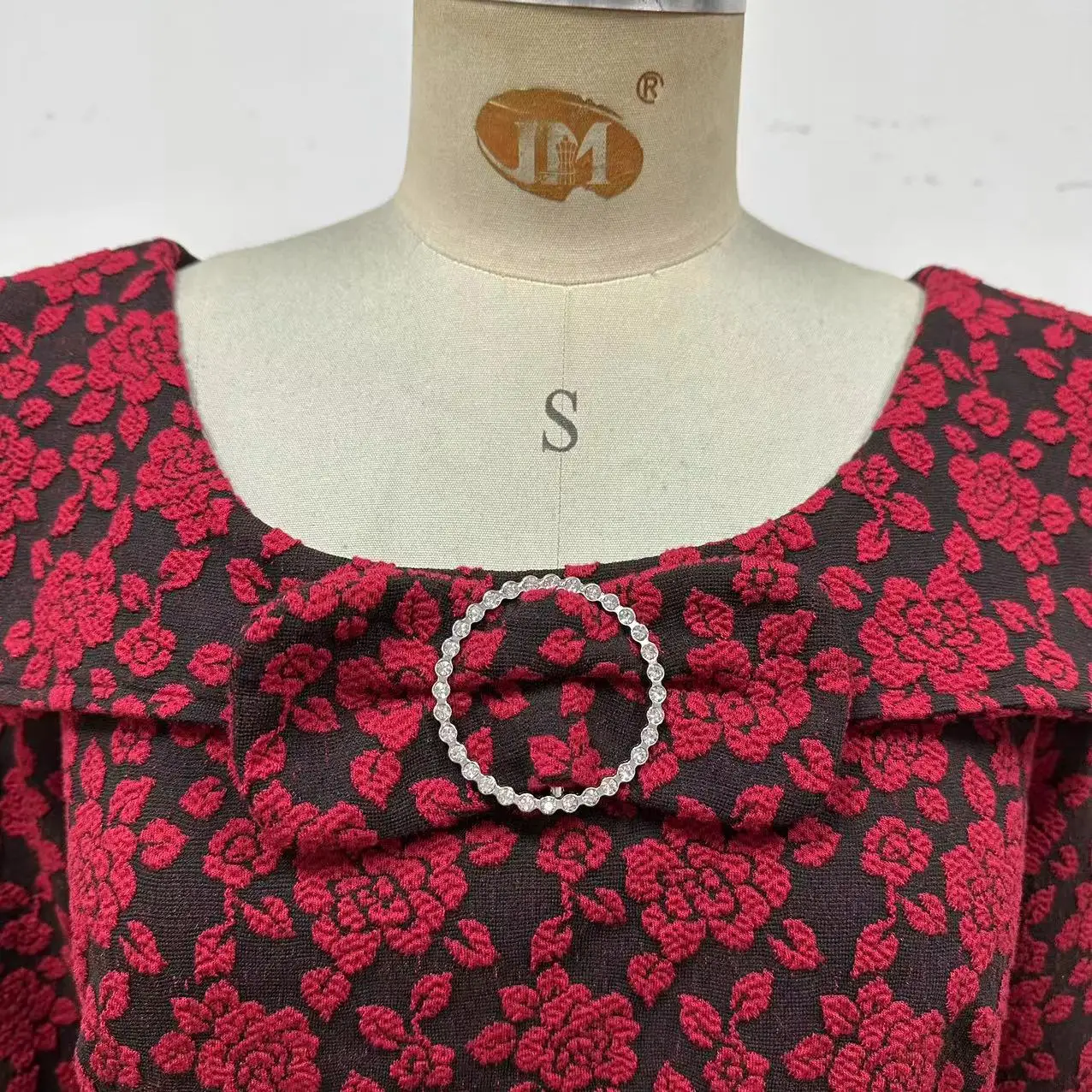 ZYHT 21541 Wholesale Crew Neck High Waist Casual Dresses Elegant Lace Velvet Mermaid Hem Ruched Long Sleeve Dresses for Women