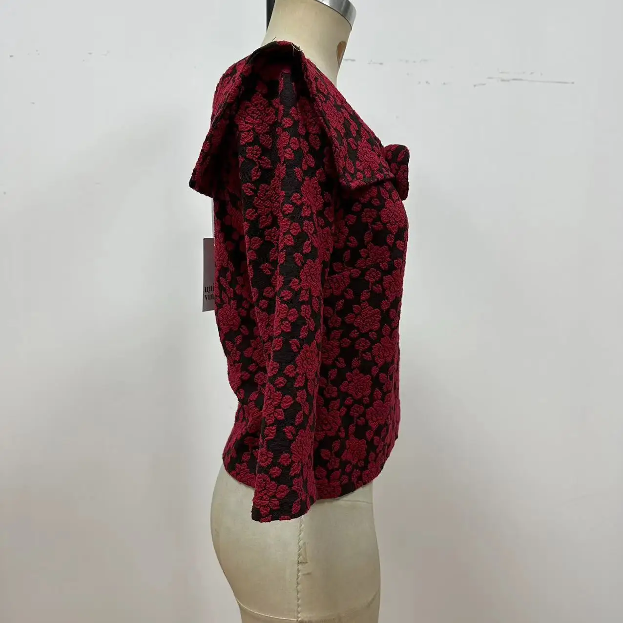 ZYHT 35239 Women's Elegant Black Velvet Blazer with White Ruffled Trim Peplum Hem & Long Puff Sleeves Chic Formal Jacket