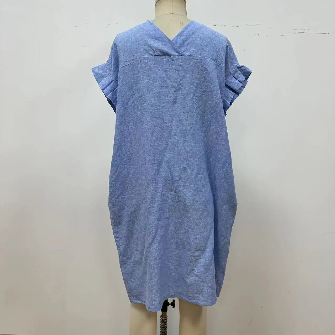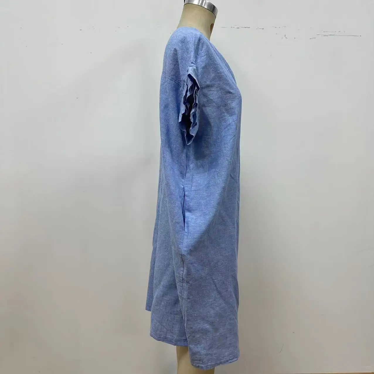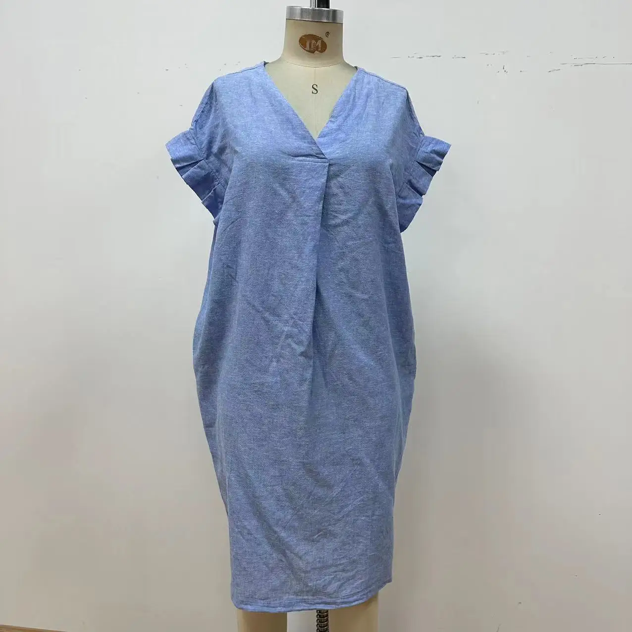 Summer New Trendy Wholesale Women's Eco-Friendly Washable Bohemian V-Neck Knee-Length Linen/Cotton Dress