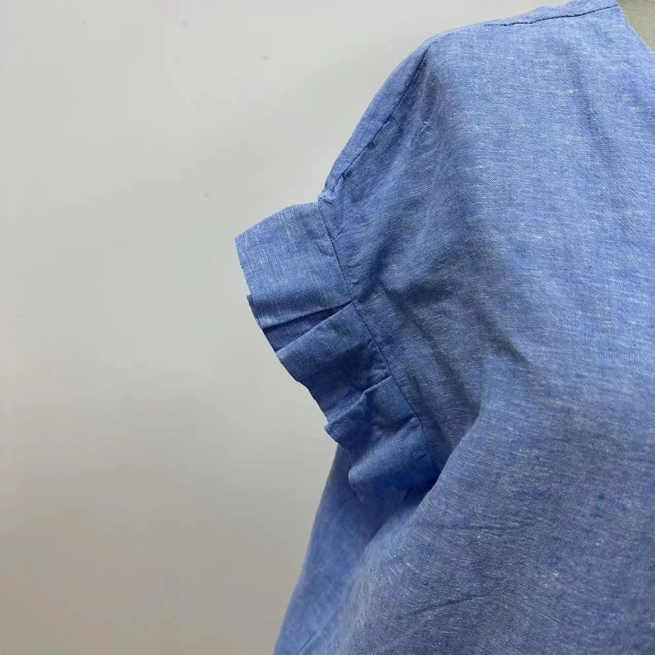 ZYHT 82024 White Blouse with Ruffled Cap Sleeves V-Neck Blouses Et Chemises Pour Femmes White Blouses for Women