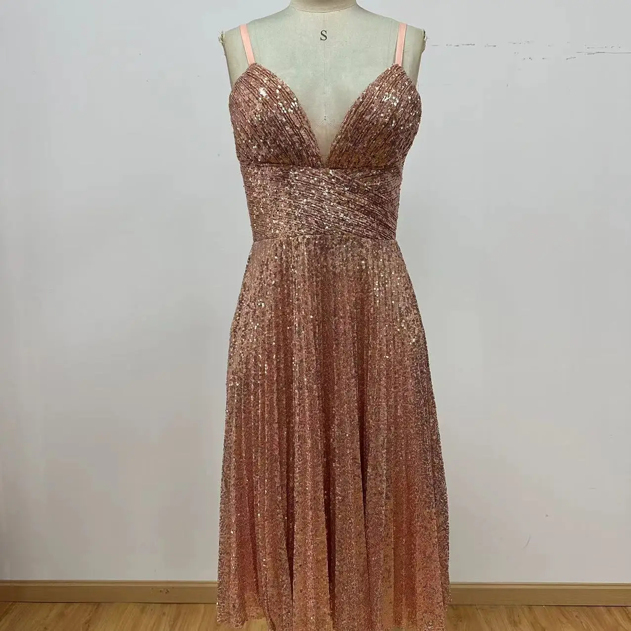 Women's Slim Fit Formal Party Sequin Fashionable Shoulder Strap Dance Suspender Dress