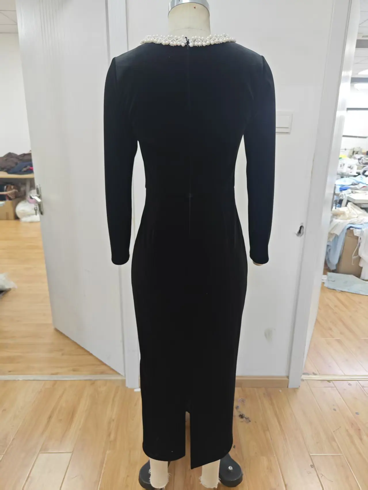 ZYHT 21541 Wholesale Crew Neck High Waist Casual Dresses Elegant Lace Velvet Mermaid Hem Ruched Long Sleeve Dresses for Women