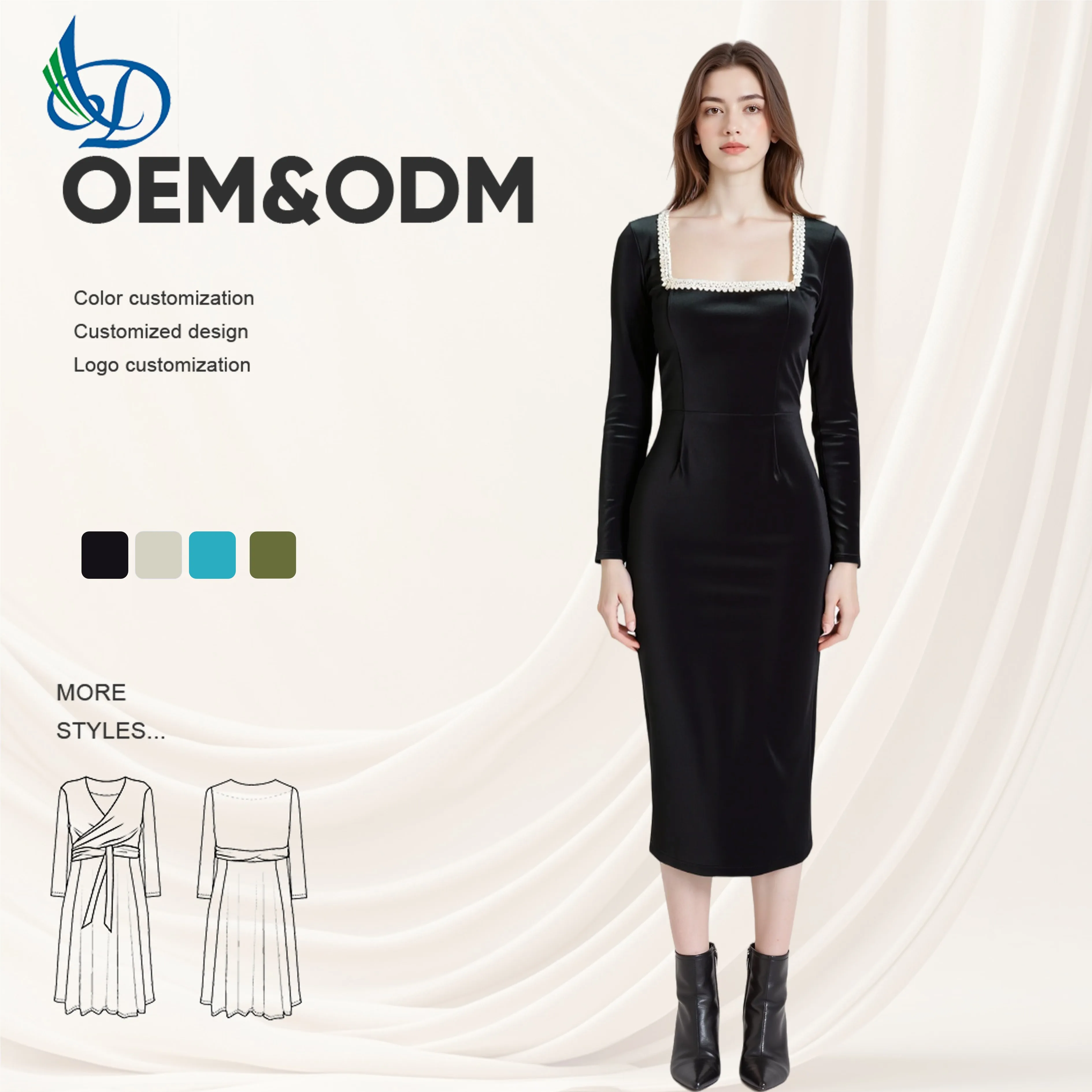 ZYHT 73902 Dark Green Blue Long Sleeve Simple Elegant Evening Dress Customize High End Women Clothing Manufacturer