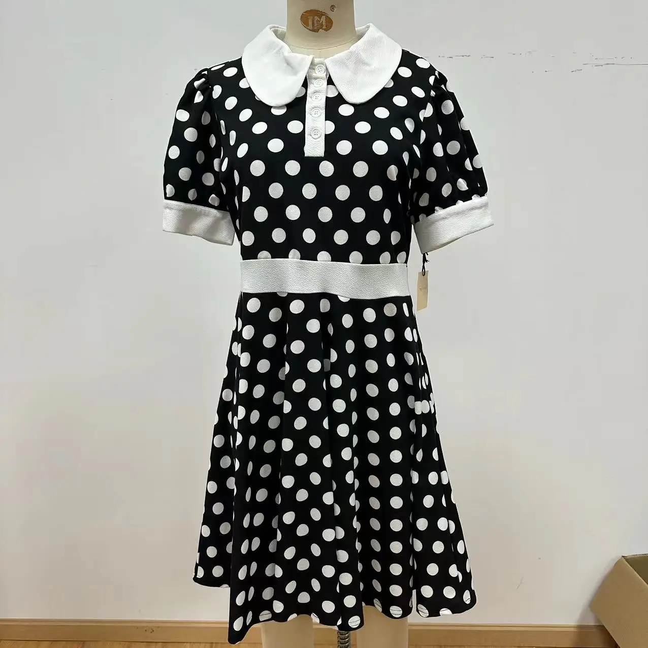 OEM Accepted Winter Simple Anti-Wrinkle High Waist Half Sleeve Button Fruit Print Knit Knee-Length Mini Apron Silhouette Dress