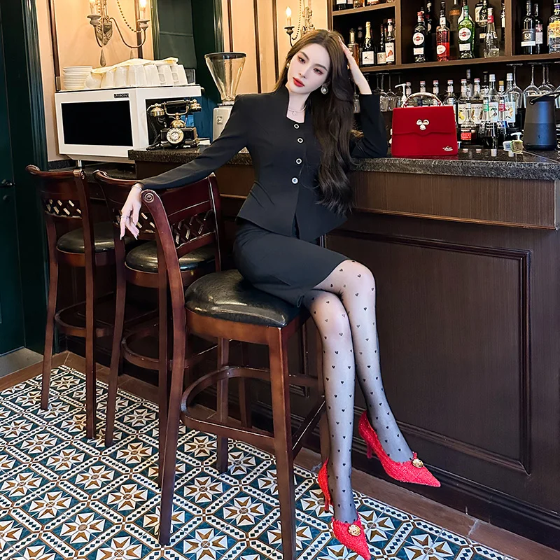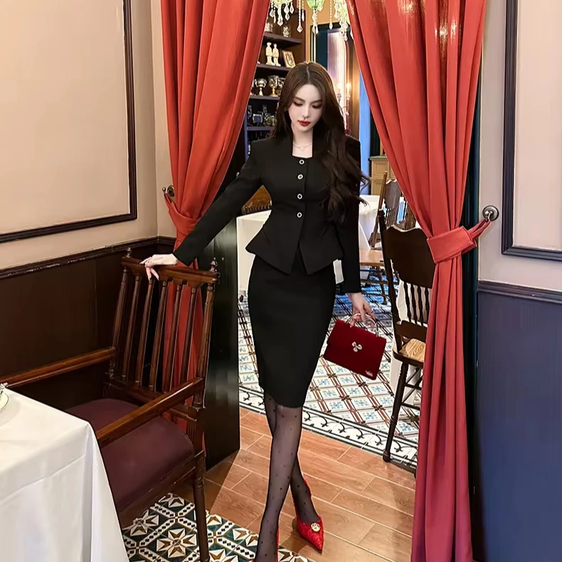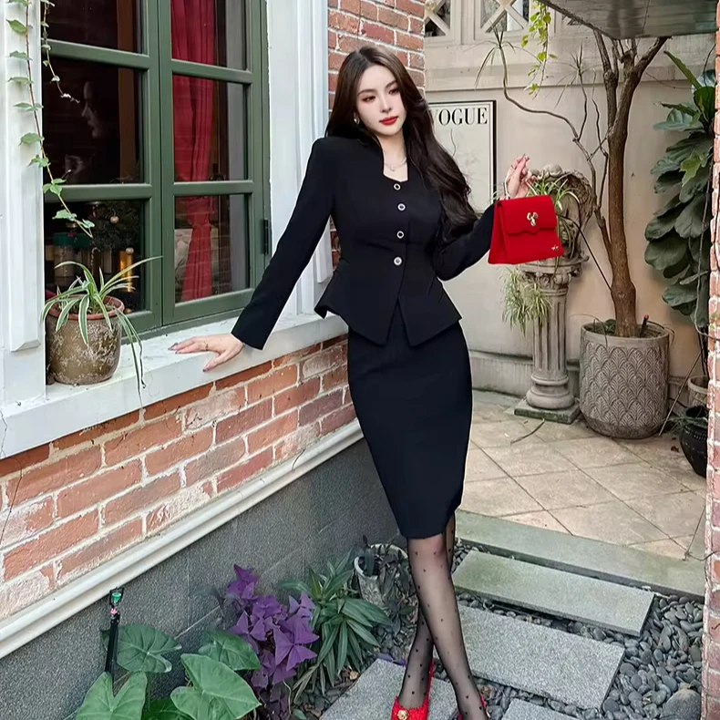 ZYHT 30021 New Arrivals Women Formal Long Sleeve Blazers Skirt Set Office Ladies Businesses Blazer Set Two Piece Skirt Set