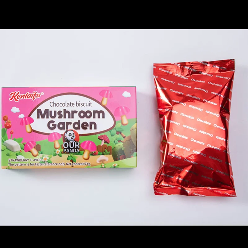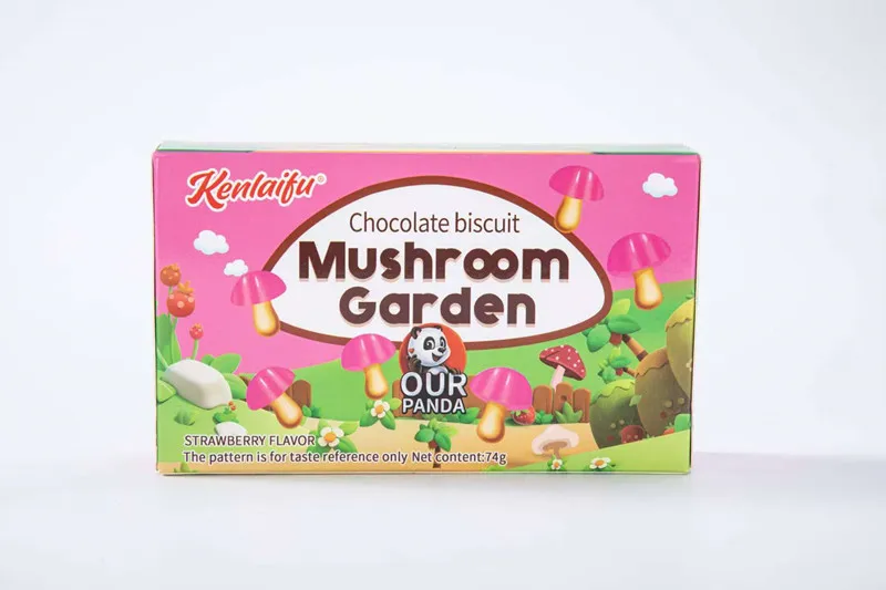 Mushroom-Shaped 74 Gram Sweet Milk Chocolate Biscuit Solid Cartoon Pattern Favor with Strawberry Flavored